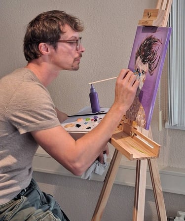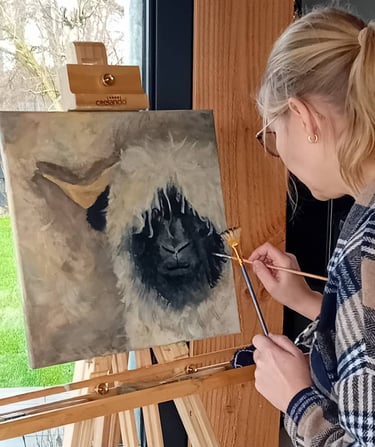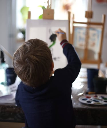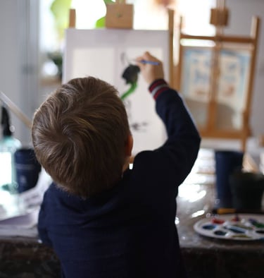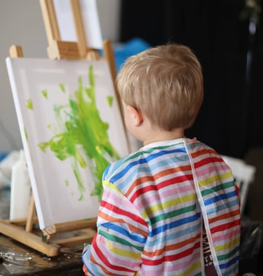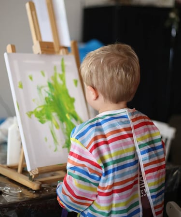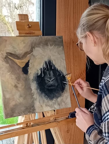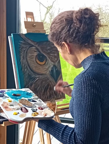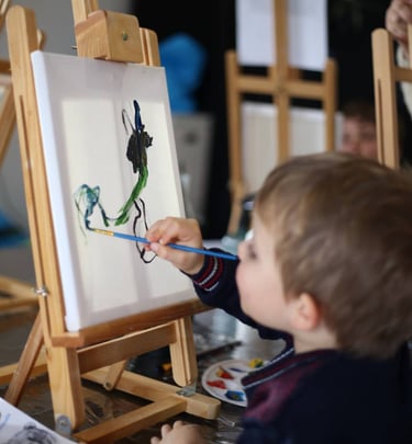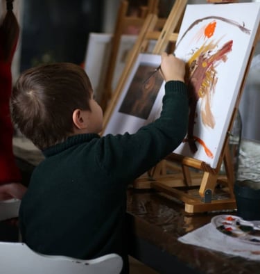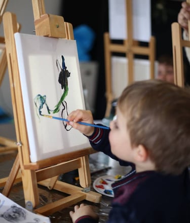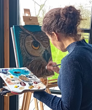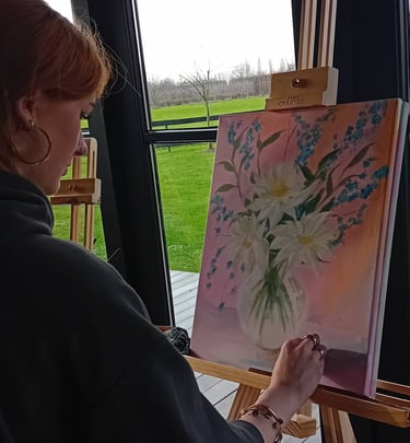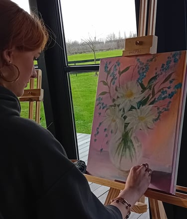 Welkom in mijn atelier. Of je nu een volwassene bent die op een ontspannen manier wil leren schilderen, verder wil werken aan een schilderij waar je eerder mee vastgelopen bent of een kind dat graag met kleur werkt, bij mij draait het om het plezier in het schilderen zelf, niet alleen om het eindresultaat.